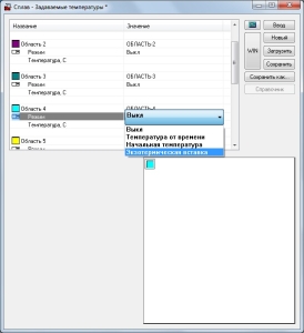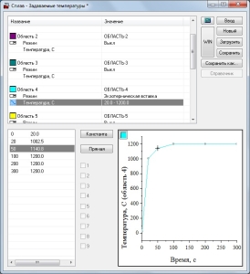 Рис.2 Задание температурно-временных характеристик экзотермической плиты.