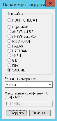 - Добавлена возможность чтения сеточных моделей, созданных в системе SALOME, которая поставляется в комплекте с «ПолигонСофт».