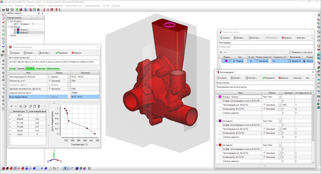 Пользователи получат обновленный препроцессор Мастер с новыми редакторами и инструментами. Постоянно совершенствуемая архитектура POLIGONSOFT продолжает вытеснять старый код, и потерявшие актуальность модули заменяются на новые. В частности, в этой версии заменены устаревшие редакторы тепловых, усадочных и механических свойств материала. Теперь все характеристики литейного сплава объединены в одном файле и доступны в новом редакторе Свойства материала, существенно расширяющем возможности и функционал для управления, включая систему проверок корректности и достаточности данных.