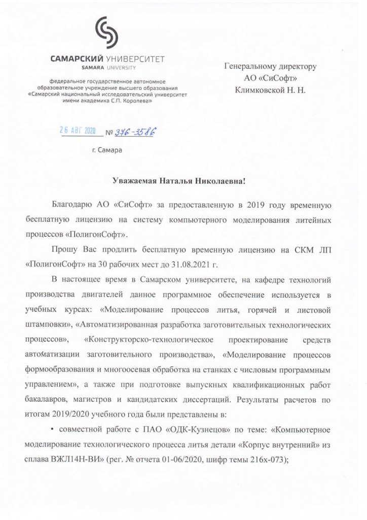 Использование в учебных и научных целях данной программы позволяет Самарскому университету готовить специалистов-технологов в соответствии с современными отечественными и мировыми стандартами.